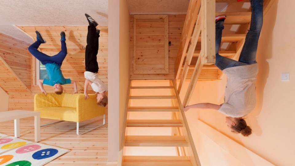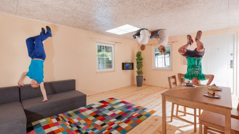 Wnętrze domu jest w pełni umeblowane, co sprawia, że zwykłe przedmioty zyskują zupełnie nowy charakter. Wchodząc do środka, odnieść można wrażenie, że grawitacja przestała działać.