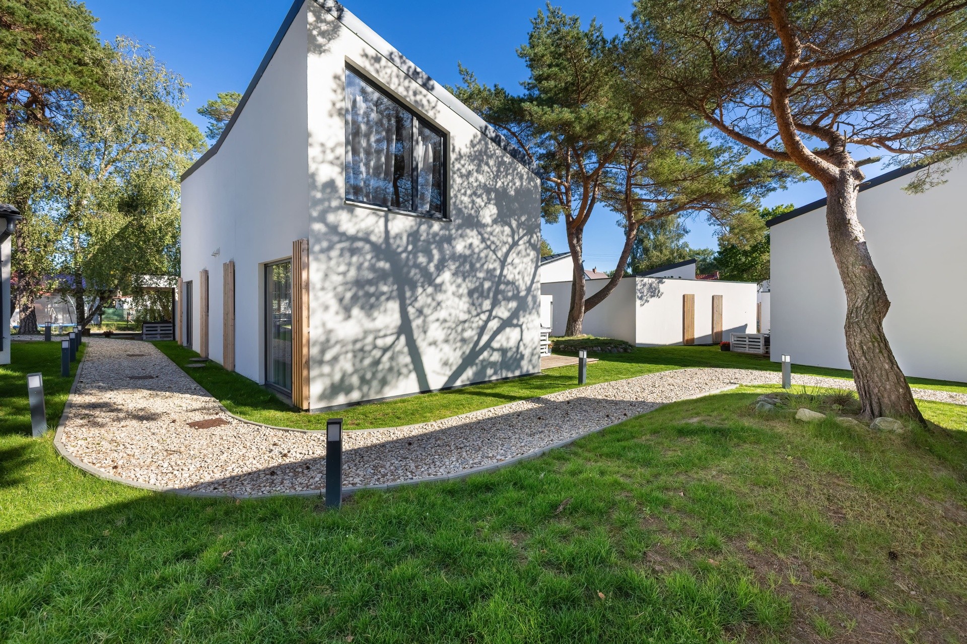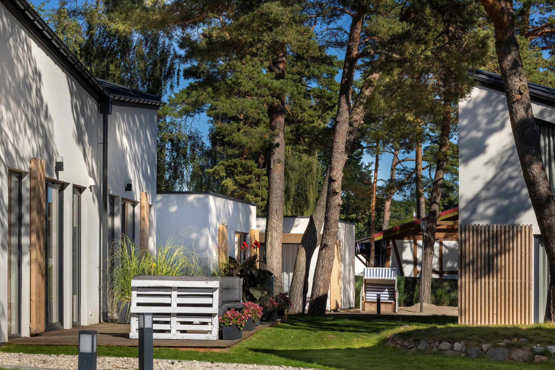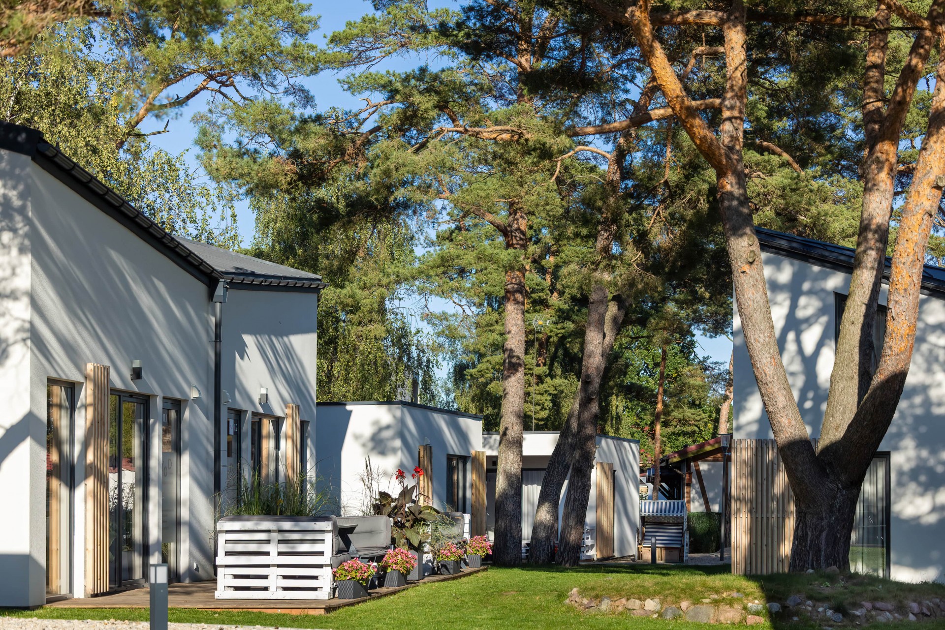 Łącznie do dyspozycji gości są 24 komfortowe domki (około 80 miejsc noclegowych). Każdy z prywatnym tarasem, dobrze wyposażoną kuchnią i jadalnią, wydzieloną strefę dzienną z TV, osobnymi sypialniami oraz łazienką z kabiną prysznicową.